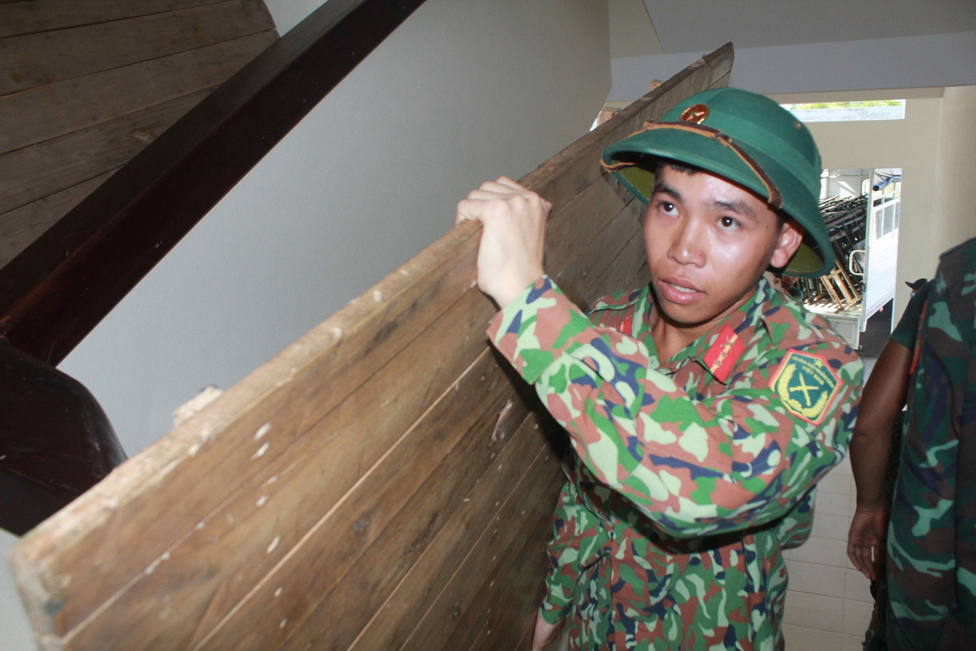| Lực lượng quân đội khẩn trương làm công tác chuẩn bị, để kịp kích hoạt khu cách ly đúng thời gian quy định |