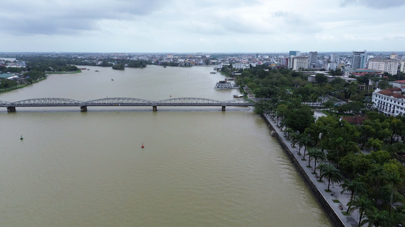 Nước lũ trên sông Hương dâng cao, vượt báo động 2.