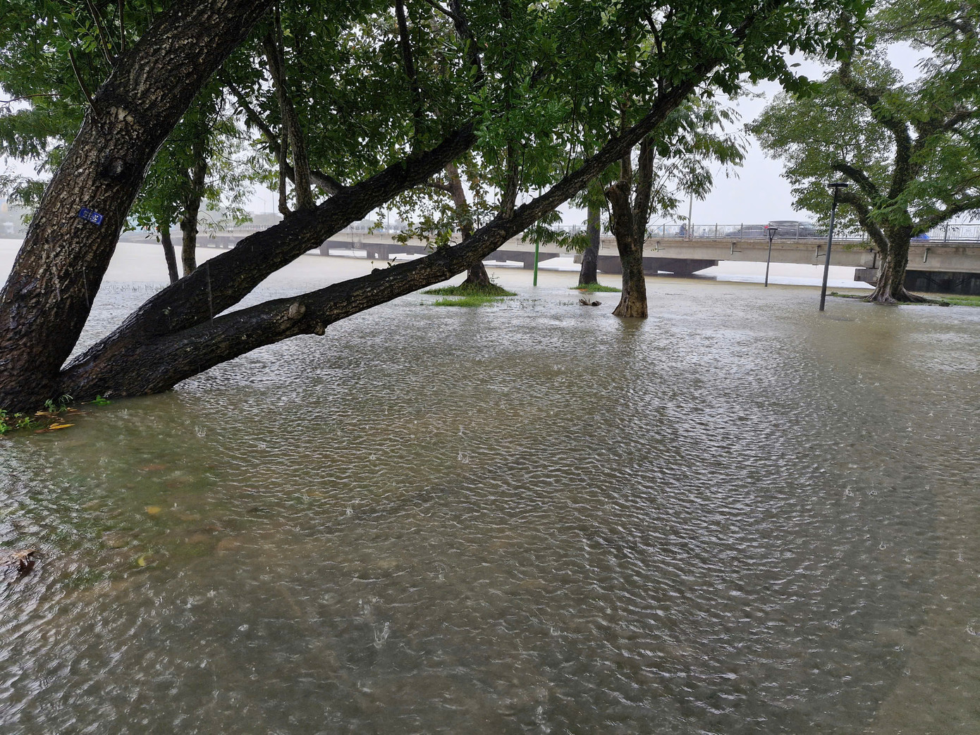 Nước tràn qua cầu Đội 1 vượt sông Nhất Đông (phường An Đông, TP. Huế.