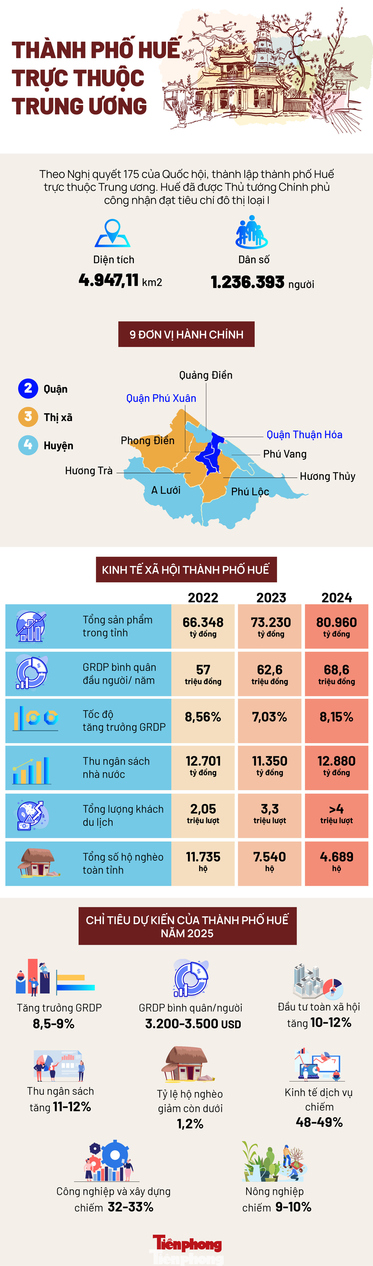TPO - Tỉnh Thừa Thiên-Huế vừa long trọng tổ chức lễ công bố Nghị quyết của Quốc hội về việc thành lập thành phố Huế trực thuộc Trung ương và Nghị quyết của Ủy ban Thường vụ Quốc hội về việc sắp xếp đơn vị hành chính cấp huyện, cấp xã của thành phố Huế. Các Nghị quyết có hiệu lực thi hành từ ngày 1/1/2025. Đây là thành phố trực thuộc Trung ương thứ 6 của cả nước.