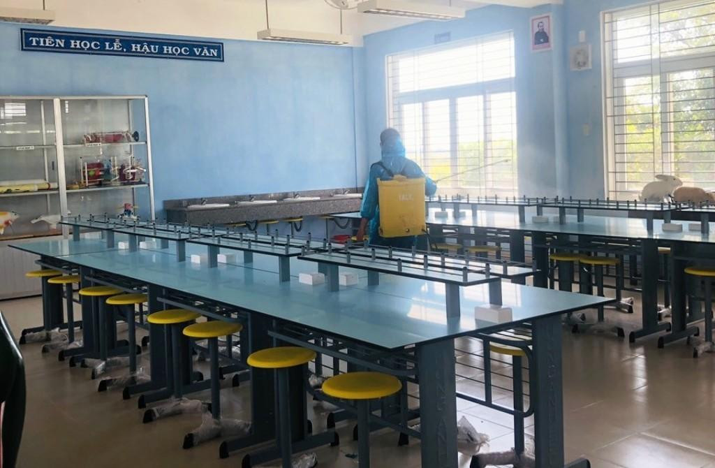 | Tất cả các phòng học đều được phun hóa chất tiêu độc, khử trùng bảo đảm phòng dịch COVID-19 |