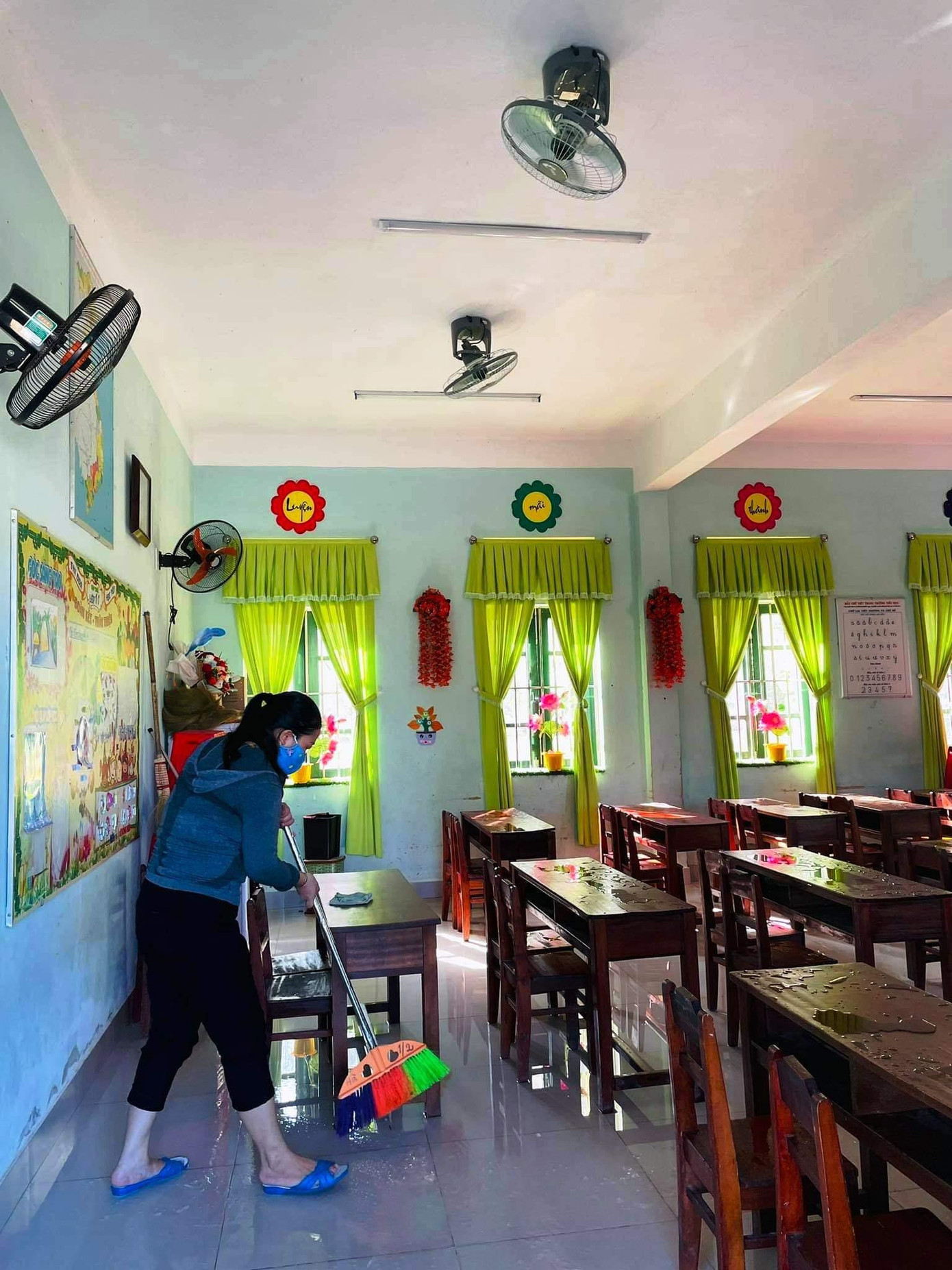 | Trường lớp, phòng ốc được vệ sinh sạch sẽ trước khi năm học mới bắt đầu |