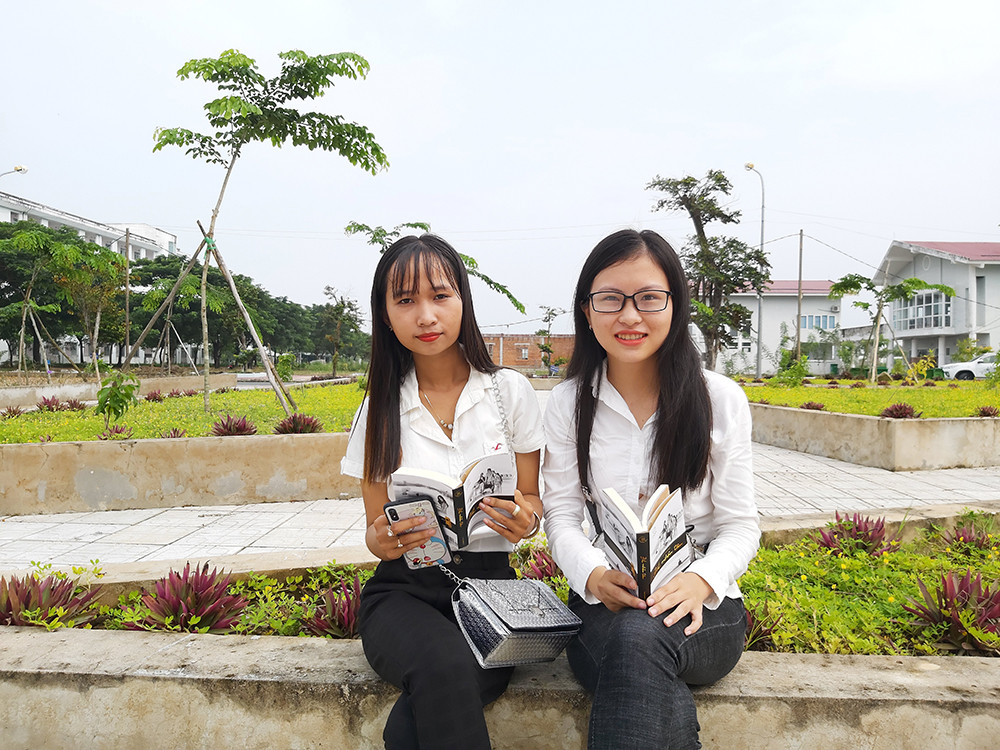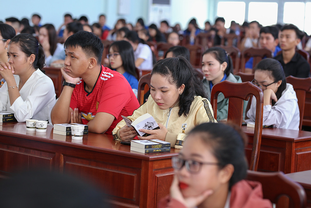 Ngồi miệt mài lật từng trang trong quyển sách Đắc nhân tâm, bạn Lê Thị Huỳnh Như, học năm nhất ngành nuôi trồng thủy sản chia sẻ: "Em rất đam mê đọc sách, từ năm lớp 1 đã bắt đầu đọc và hình thành thói quen cho đến giờ. Hôm nay mặc dù ngày nghỉ nhưng em vẫn nán lại tham dự hành trình để xin những quyển sách quý mà Tập đoàn Trung Nguyên Legend trao tặng nhằm bổ sung vào kho sách riêng của mình".
