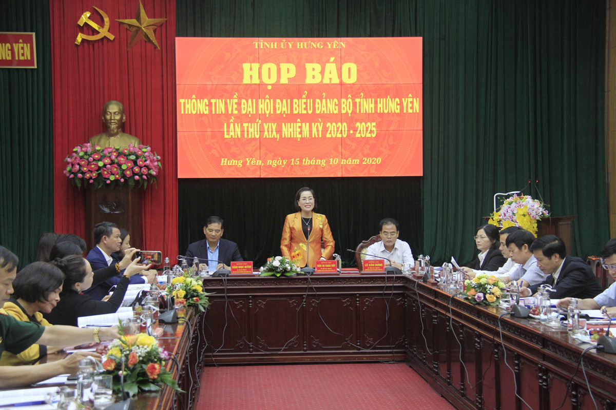 Bà Trần Thị Thanh Thủy, Trưởng ban Tuyên giáo Tỉnh ủy; ông Lê Văn Hưng, Trưởng ban Tổ chức Tỉnh ủy; ông Đặng Ngọc Quỳnh, Phó Chủ tịch Thường trực UBND tỉnh Hưng Yên chủ trì cuộc họp báo.