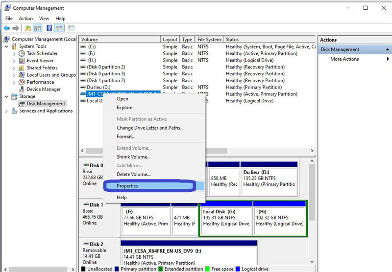 Bước 4: Click chuột phải vào tên USB rồi chọn Properties.
