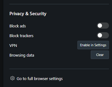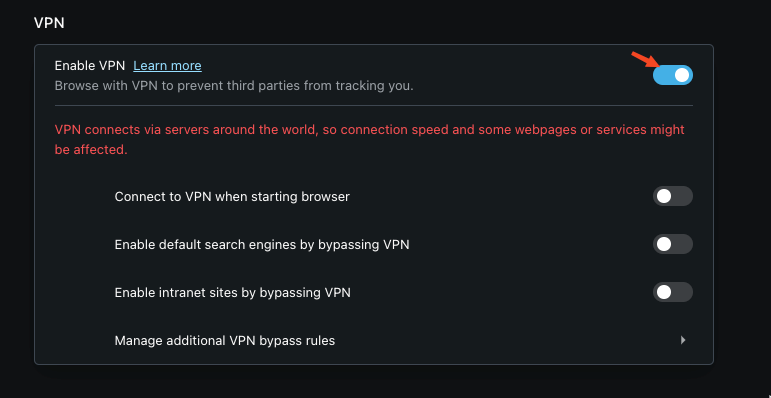 - Nhấn vào biểu tượng Cài đặt -> Chọn Enable in Setting phần VPN.