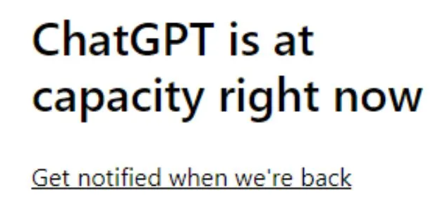 - Khi quá tải, website có thể hiện lỗi ChatGPT is at capacity right now.