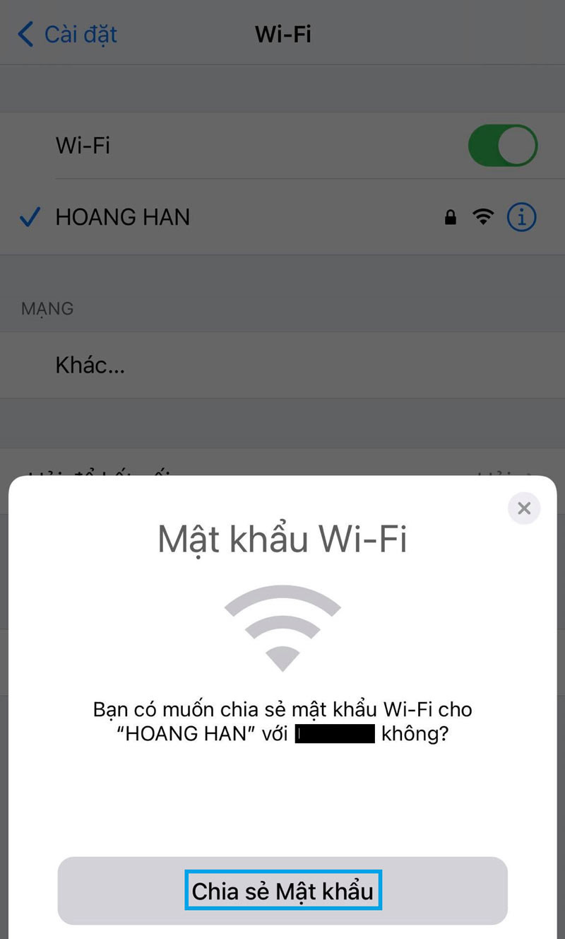 Hướng dẫn chia sẻ mật khẩu Wi-Fi trên iPhone