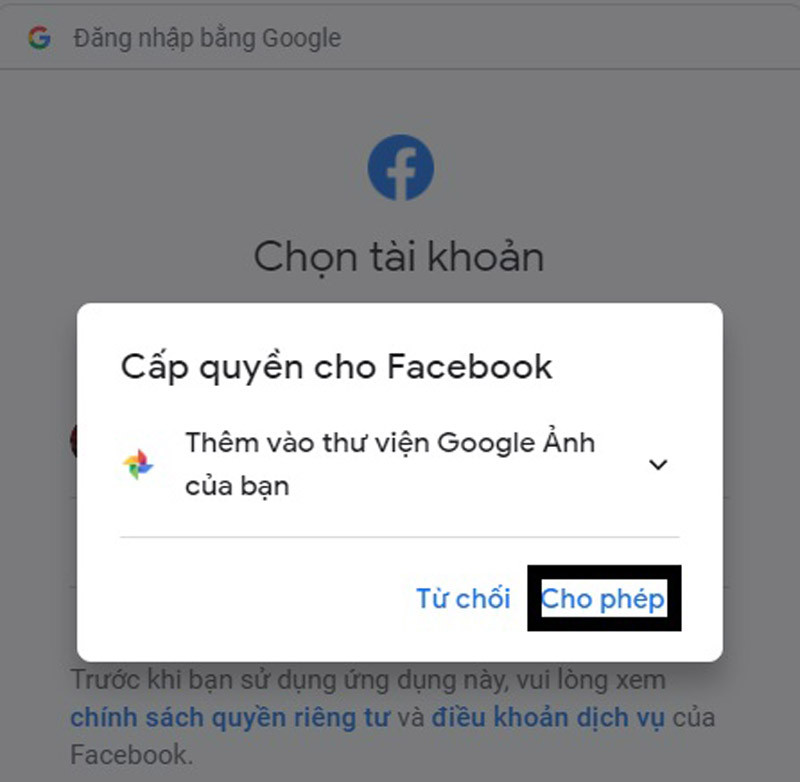 Bước 8: Cấp quyền cho Facebook bằng cách chọn Cho phép.