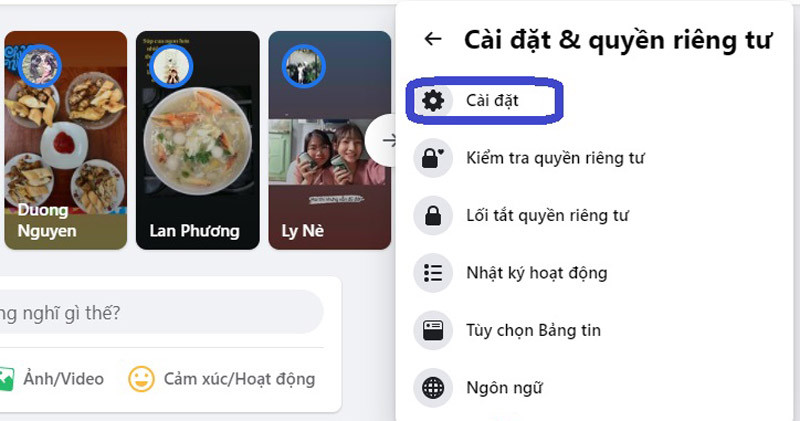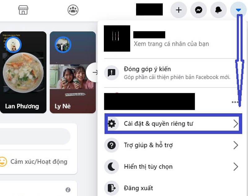 Bước 1: Sau khi đăng nhập, bạn vào menu mở rộng. Kế đến, chọn Cài đặt & quyền riêng tư.