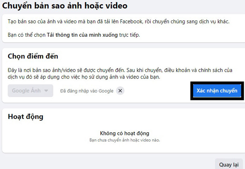 Sau đó, chờ đợi ít phút để quá trình sử lý hoàn tất. Lưu ý, quá trình xử lý nhanh hay chậm tùy thuộc vào số lượng ảnh, video cần chuyển cũng như tốc độ internet nơi bạn sử dụng.