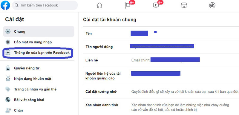 Bước 3: Vào phần Thông tin của bạn trên Facebook.