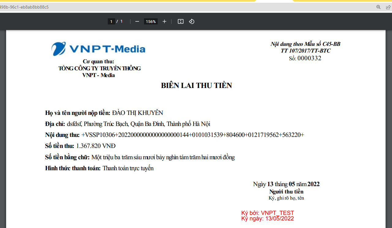 Sau khi thanh toán thành công, người dùng có thể thực hiện in biên lai bằng cách chọn: “In biên lai”.
