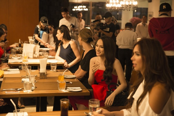 Nữ ca sĩ tự tin và nhiệt tình giao lưu, trò chuyện cùng ban tổ chức cũng như các người đẹp khác.