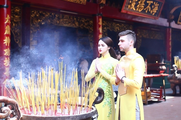 Mới đây, Hương Giang Idol cùng bạn nhảy đã cùng nhau thực hiện bộ ảnh trong tà áo dài truyền thống của Việt Nam.