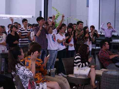 Kông chỉ gây ấn tượng bằng sự thân thiện, Hương Giang còn 'quậy' hết cỡ cùng các fans qua các trò chơi. Cô nàng thích thú khi trở thành ban giám khảo đố các fans trong các câu hỏi khó.