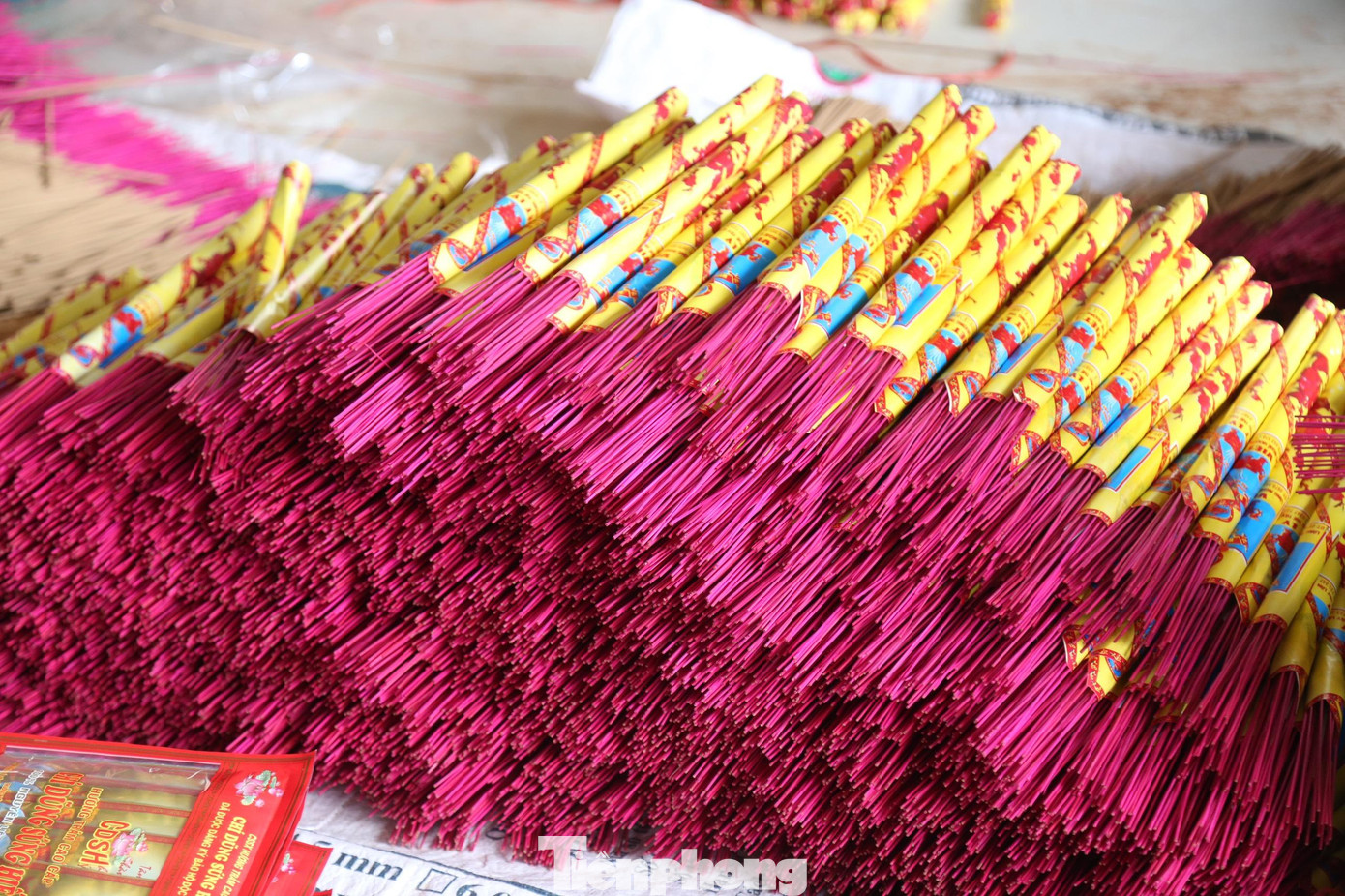 | Từng bó hương được người thợ đóng gói và dán nhãn trước khi đem đi tiêu thụ. |