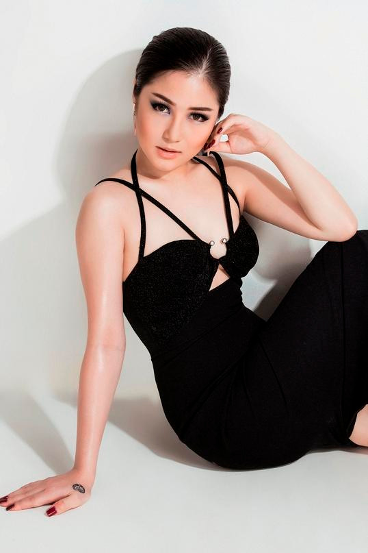 Quán quân Giọng hát Việt mùa đầu tiên mặc váy đen bó sát, cắt xẻ táo bạo khoe vòng một đầy đặn và quyến rũ.