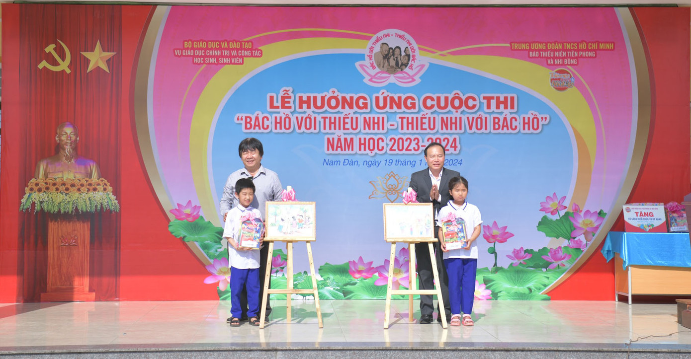 Tiếp nối thành công của cuộc thi “Bác Hồ với thiếu nhi – Thiếu nhi với Bác Hồ” các năm trước, báo Thiếu niên Tiền Phong và Nhi đồng phối hợp cùng Vụ Giáo dục chính trị và Công tác học sinh, sinh viên tiếp tục tổ chức, triển khai rộng rãi cuộc thi “Bác Hồ với thiếu nhi - Thiếu nhi với Bác Hồ” năm học 2023 - 2024 trên quy mô toàn quốc. Lễ hưởng ứng Cuộc thi vừa được tổ chức tại trường Tiểu học Hoàng Trù, xã Kim Liên, huyện Nam Đàn, tỉnh Nghệ An.