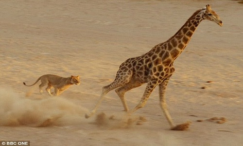 Cuộc chiến sinh tử giữa sư tử và hươu cao cổ trên sa mạc châu Phi được phát trong chương trình tài liệu tự nhiên Planet Earth II trên kênh BBC tối hôm qua khiến người xem gần như nghẹt thở, theo The Sun.