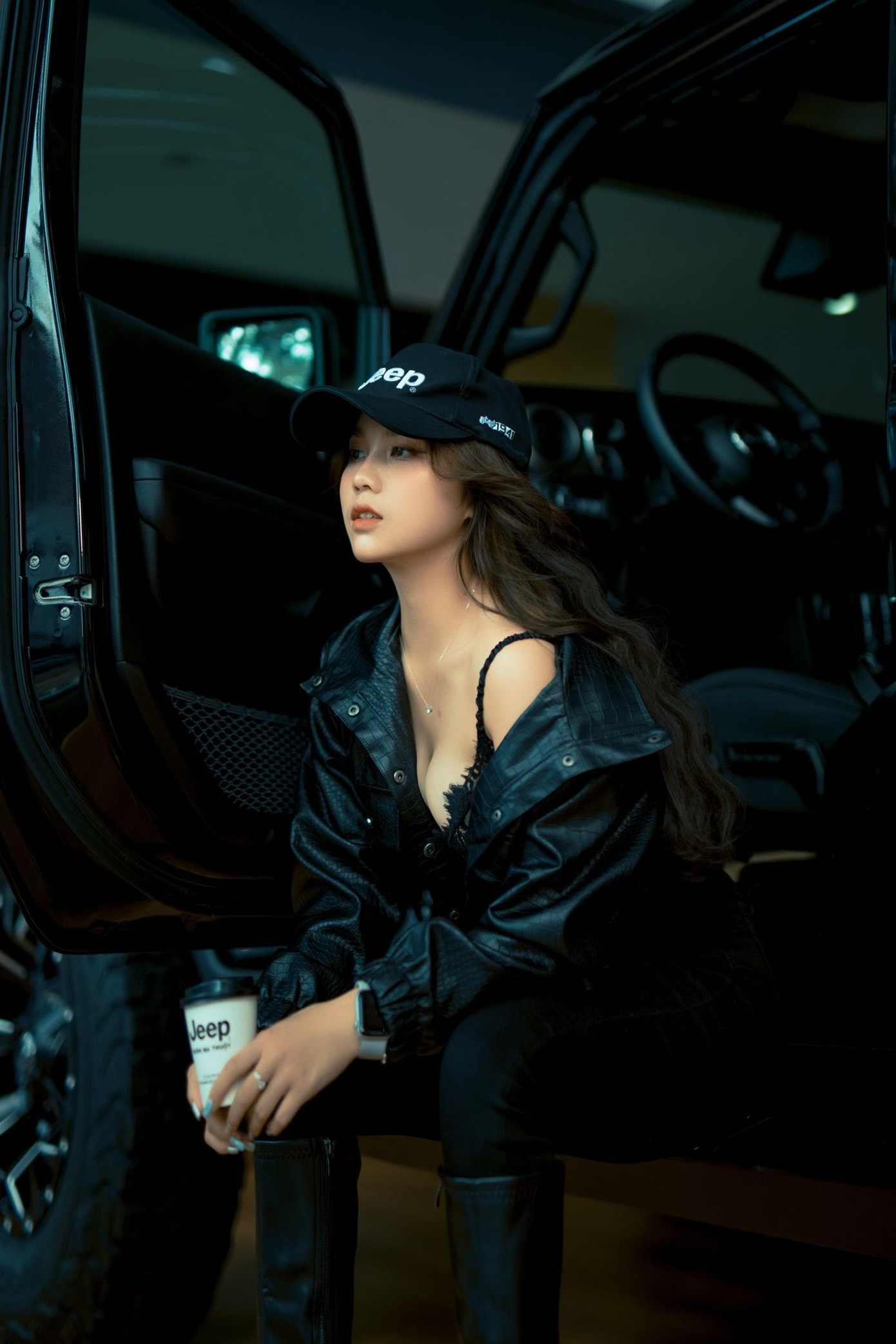 Nếu hình ảnh bên xe Jeep luôn là sự cool ngầu, mạnh mẽ, nam tính dành cho phái mạnh thì với phụ nữ lại toát lên vẻ kiêu kì, sexy và đôi khi là sang chảnh. Bộ ảnh của Phương Thảo với tông màu đen chủ đạo mang sự huyền bí nhưng cũng đầy phóng khoáng. Nó cũng thể hiện sự tự do của người phụ nữ có cá tính và dám làm những điều tưởng chừng như không thể.