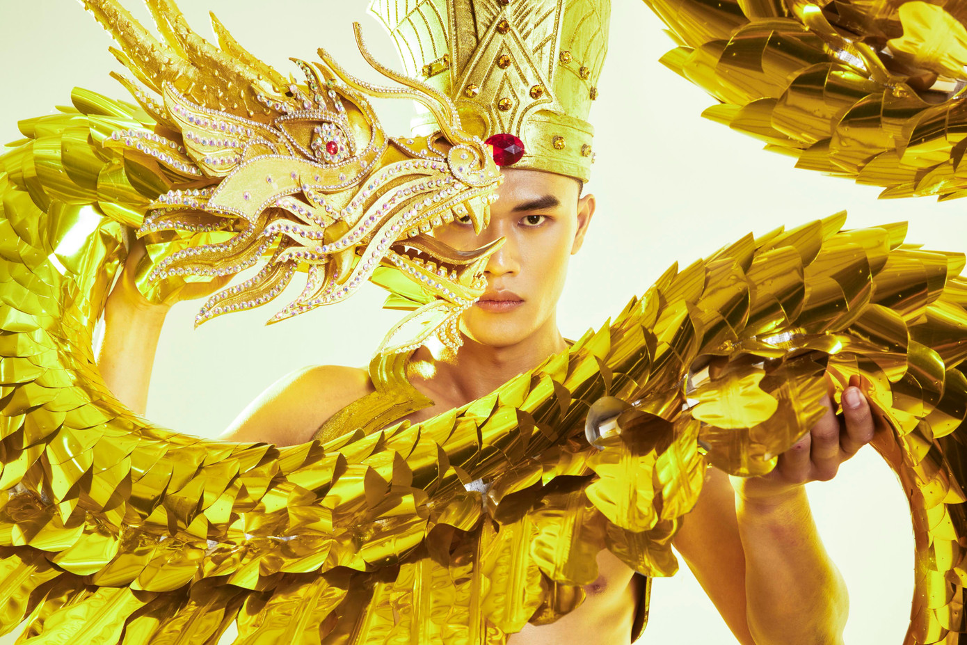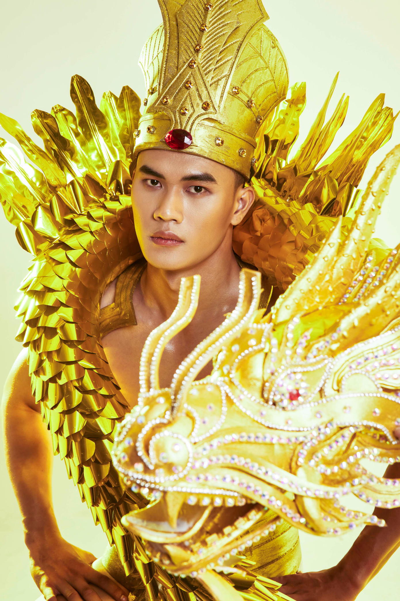 | Hữu Anh hóa Chiến binh Rồng đi thi Nam vương Thế giới 2022. |