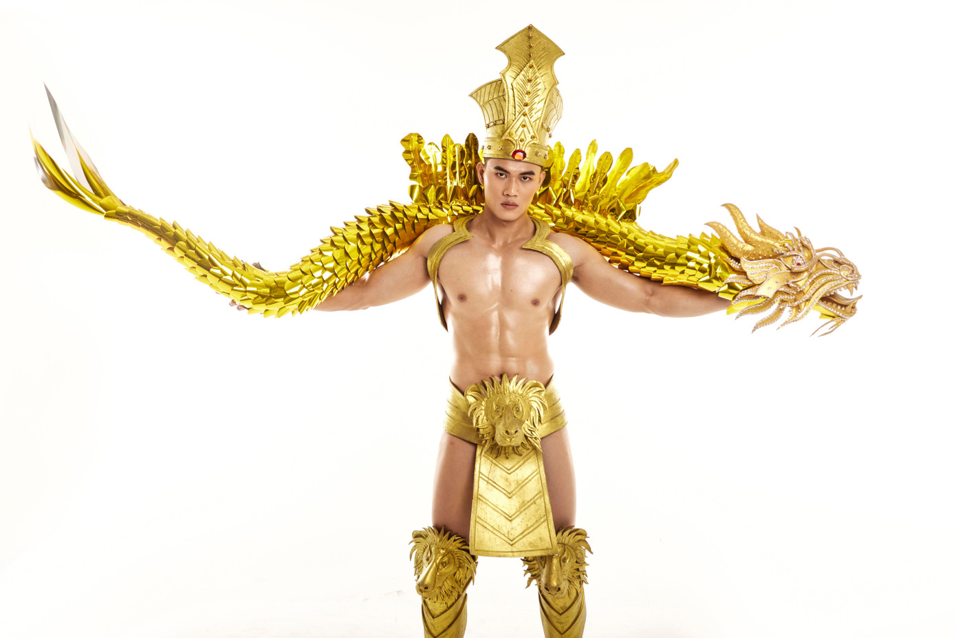 Vì đại diện Việt Nam sinh năm 2000 nên nhà thiết kế Nam Phong CoCo & PaPa quyết định tạo nên một bộ trang phục dân tộc mang trọn vẹn hình ảnh rồng vàng cao quý để Hữu Anh hóa thân chiến binh uy dũng đi thi.