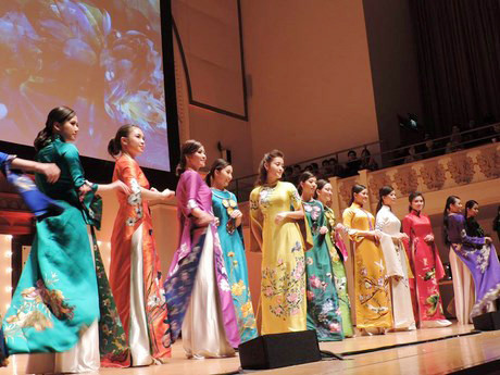 Màn trình diễn áo dài của dàn người đẹp VIệt đã gây được thiện cảm với các khán giả theo dõi chương trình.