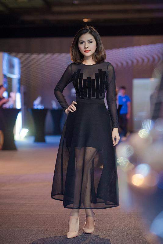 Hiểu được vóc dáng của mình Vân Trang cũng có những lựa chọn rất thông minh về trang phục, cô lựa chọn váy đen ôm sát gợi cảm với những khoảng cắt xẻ vừa đủ để thu hút sự chú ý.