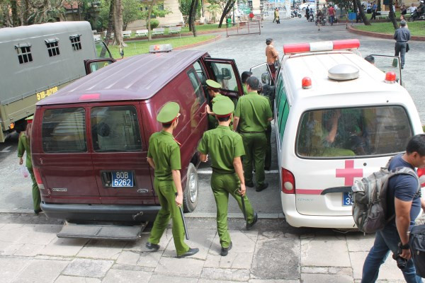 Lực lượng Cảnh sát áp giải các bị cáo về trại giam. Ảnh Việt Văn