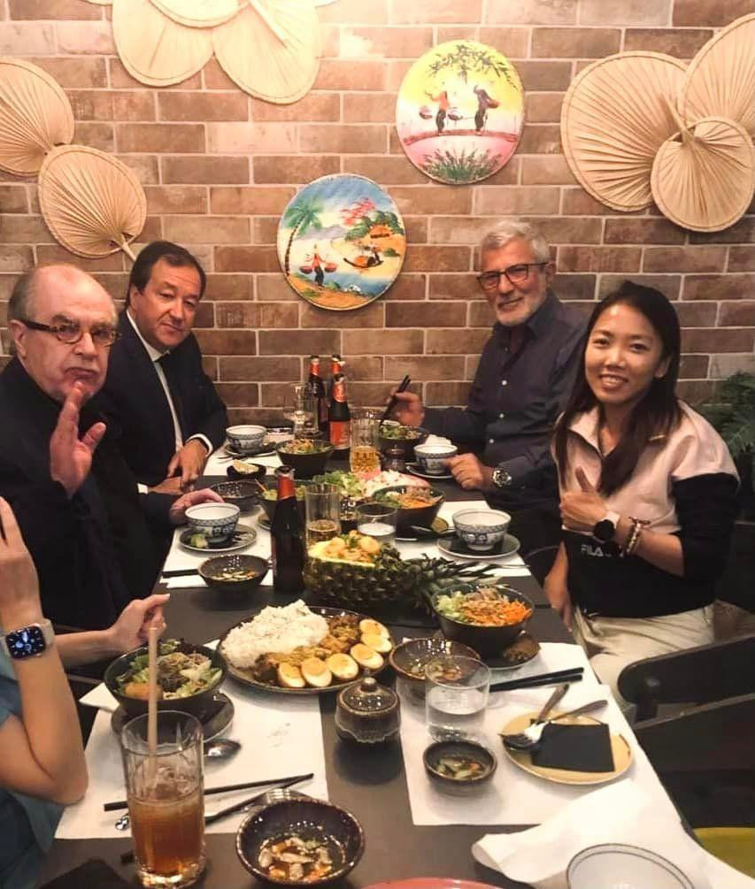 Trên trang cá nhân, Huỳnh Như chia sẻ hình ảnh cuộc gặp mặt với người quen và cựu HLV Calisto. Địa điểm gặp gỡ là một nhà hàng món Việt Nam ở Porto, Bồ Đào Nha. Đây cũng là cơ hội để Huỳnh Như thưởng thức hương vị ẩm thực quê nhà.