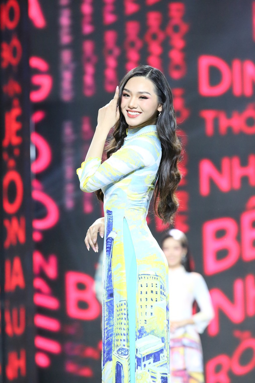 | Các trang phục áo dài đa phong cách giúp các thí sinh thoả sức trình diễn trên sân khấu. |