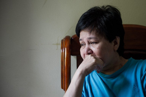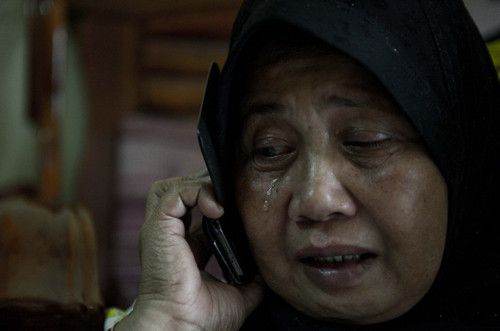 Bà Sarah Nor, 55 tuổi, mẹ của hành khách Norliakmar Hamid, 34 tuổi, trầm tư với đôi mắt mệt mỏi và sưng lên vì khóc