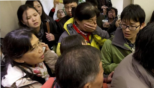 Người nhà của đôi vợ chồng tại Kuala Lumpur rơi nước mắt vì lo lắng cho họ. Trời khuya dần nhưng số phận của các hành khách và chiếc phi cơ vẫn chưa rõ ra sao