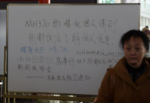 Tại sân bay Bắc Kinh, một tấm bảng thông báo người nhà và bạn bè của các hành khách trên máy bay Malaysia Airlines tập trung tại một khách sạn cách đó 15 km để chờ đợi thêm thông tin. Họ cũng cung cấp xe buýt để đưa đón các thân nhân
