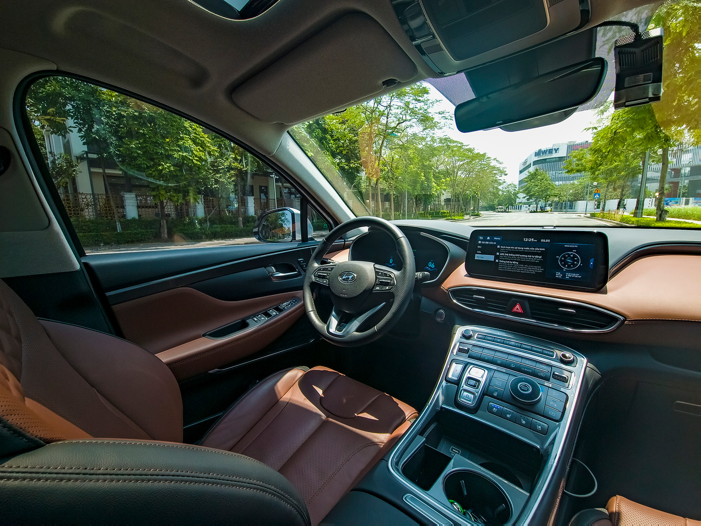 Trên Santa Fe cũng gồm nhiều tính năng như các mẫu xe cao cấp như ghế trước có sưởi ấm và làm mát, sấy vô-lăng, hỗ trợ xuống dốc, camera 360 toàn cảnh, điều hòa tự động hai vùng độc lập. Hàng ghế thứ 3 của xe có dàn lạnh độc lập, đem đến sự dễ chịu khi di chuyển ở những cung đường đi dài của gia đình nhiều người.