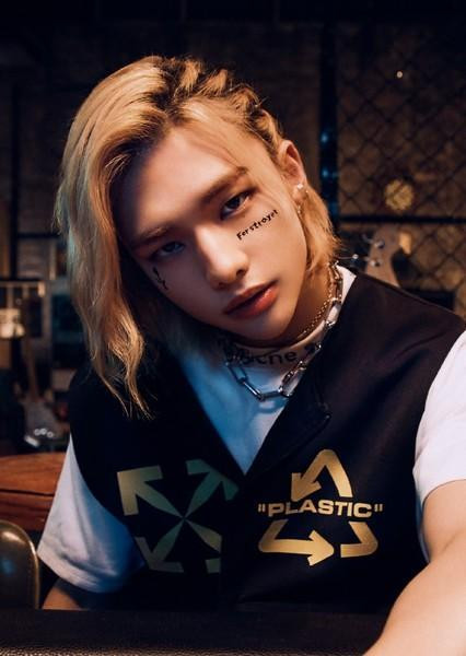 Hyunjin khiến trái tim của người hâm mộ xao xuyến với visual mang nét buồn man mác. Mái tóc vàng từng gây sốt thời gian dài trước đây của Hyunjin được thay thế bởi mái tóc đen đã cắt ngắn hơn.