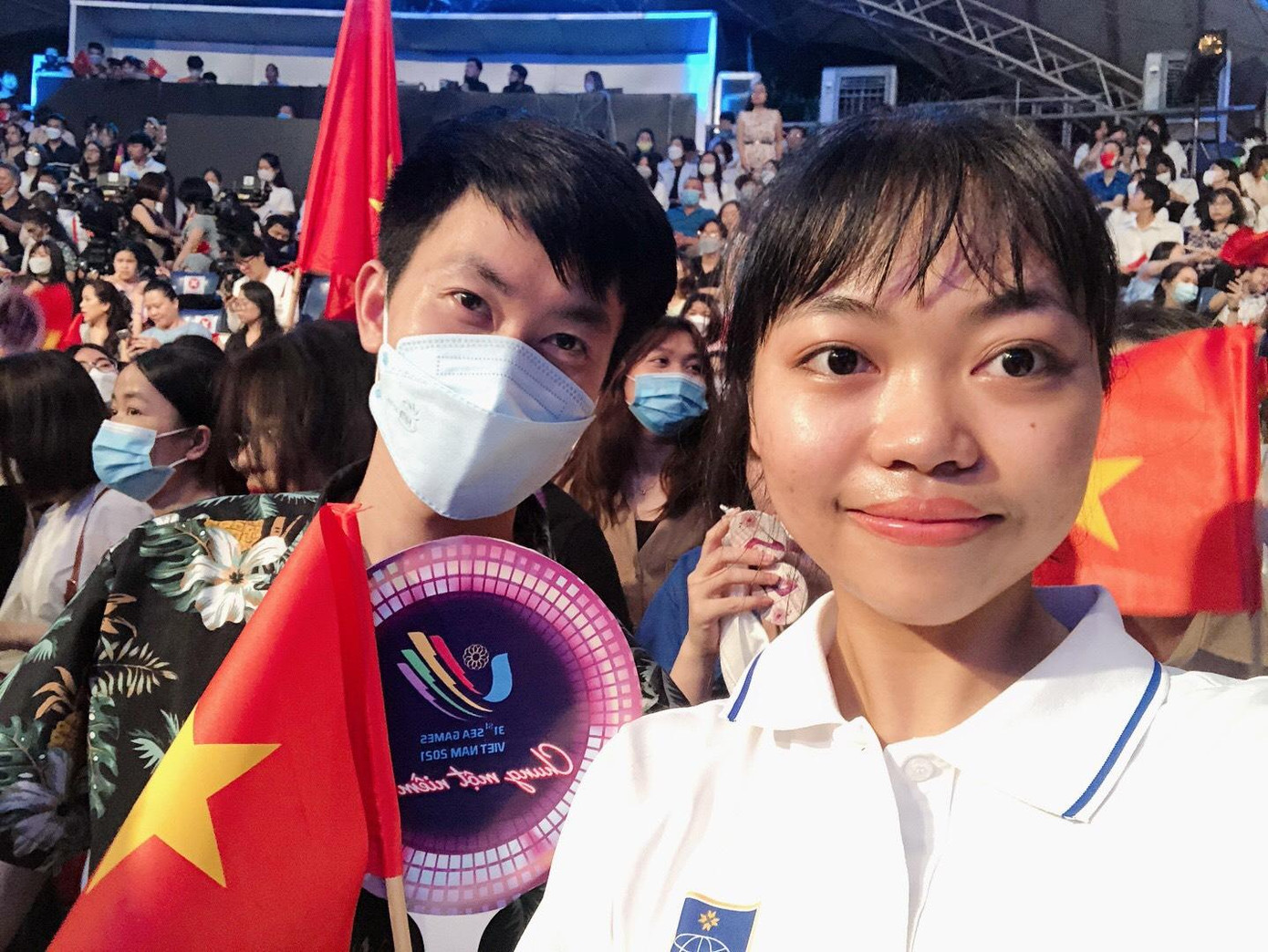 Tiếp đến mình được tham dự buổi lễ Khai mạc SEA Games 31, lần này mình tự tin hơn nên chủ động đến sớm nhận thẻ và vé để có thể vào sân phục vụ. Trước hôm diễn ra mình đã chuẩn bị kiến thức về thể thao, về văn hóa nước bạn. Về ngoại ngữ mình rất tự tin thể hiện sự thân thiện tươi cười trao đổi hướng dẫn vui vẻ. Mình còn cùng các bạn sinh viên trường khác tham gia gom rác nhựa thải sau chương trình diễn ra với thông điệp “Vì một SEA Games xanh”.