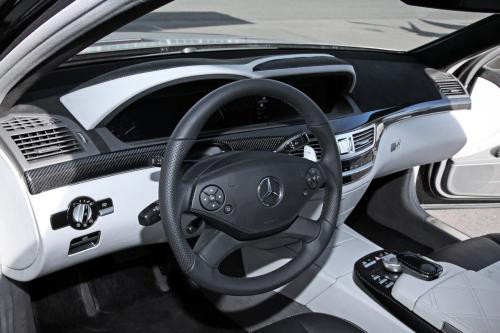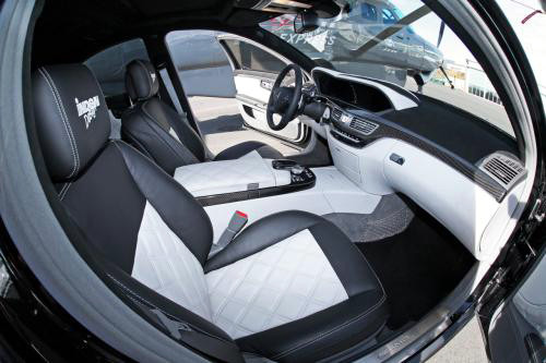 Trong khi đó, Inden Design ứng dụng 2 tông màu chính cho nội thất của Mercedes-Benz S500, bao phủ toàn bộ bằng da Alcantara cho ốp trần, óp cửa và 3 cột bên trong cùng với một số chi tiết ứng dụng vật liệu sợi các-bon thay thế cho chi tiét gỗ đặc trực của Mercedes. Đồng hồ công-tơ-mét mới có thể hiển thị tốc độ lên 360km/h.