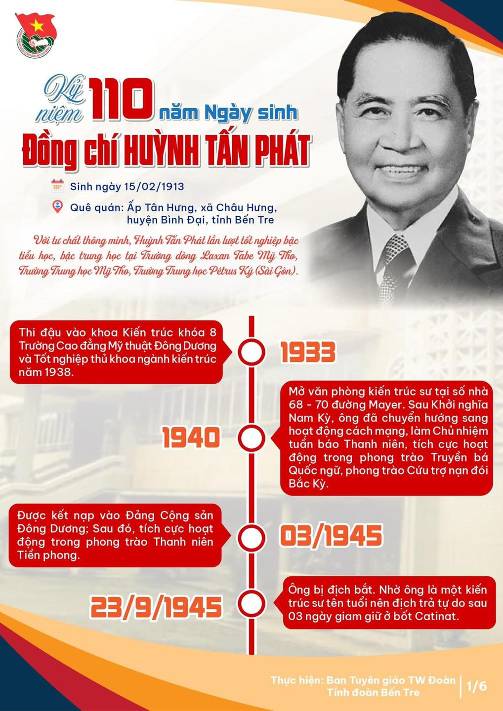 [Infographic] 110 năm ngày sinh đồng chí Huỳnh Tấn Phát
