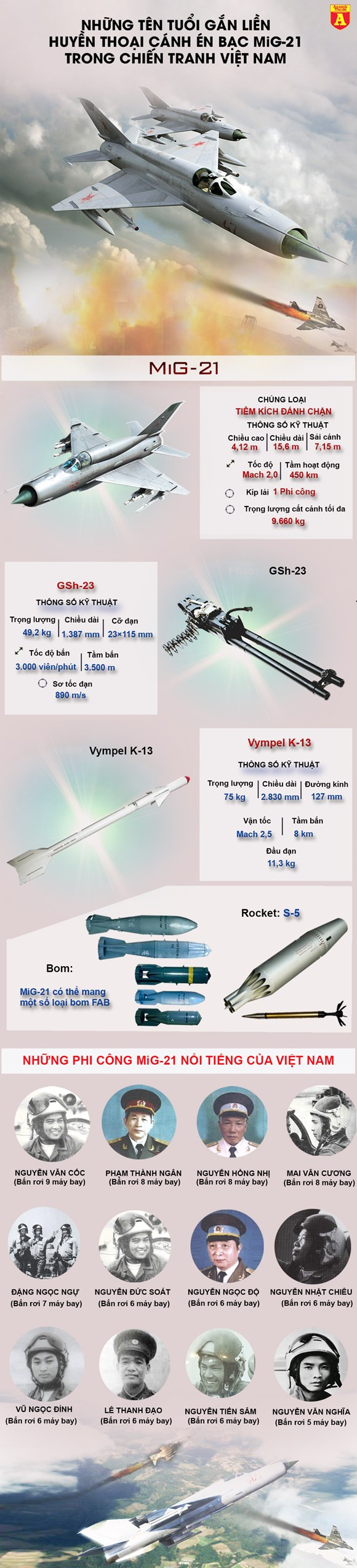 Việt Nam đã được Liên Xô viện trợ MiG-21 vào năm 1965. Bằng chiến thuật tài tình và sự quả cảm, những phi công Việt Nam cùng với chiến đấu cơ MiG-21 đã lập lên hàng trăm chiến công, bắn rơi các loại tiêm kích hiện đại nhất của Mỹ lúc bấy giờ như F-4, F-105 và đặc biệt là bắn cháy cả pháo đài bay B-52.