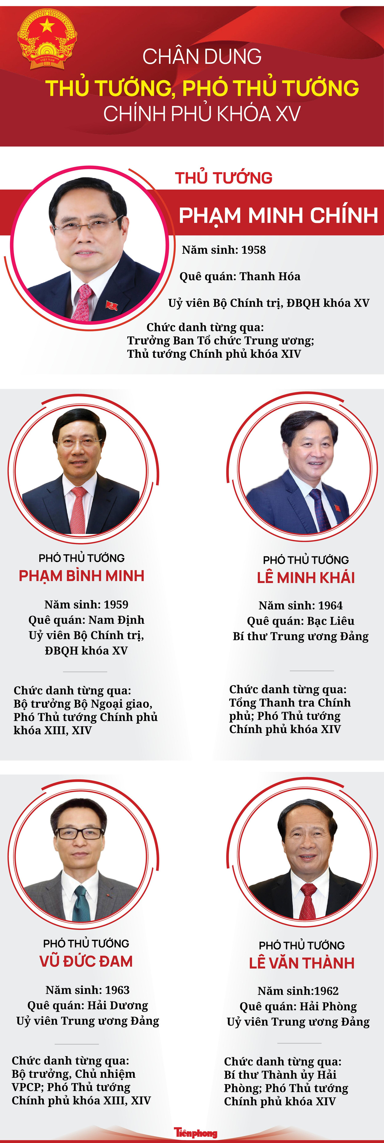 [Infographic] Chân dung Thủ tướng và 4 Phó Thủ tướng Chính phủ nhiệm kỳ mới