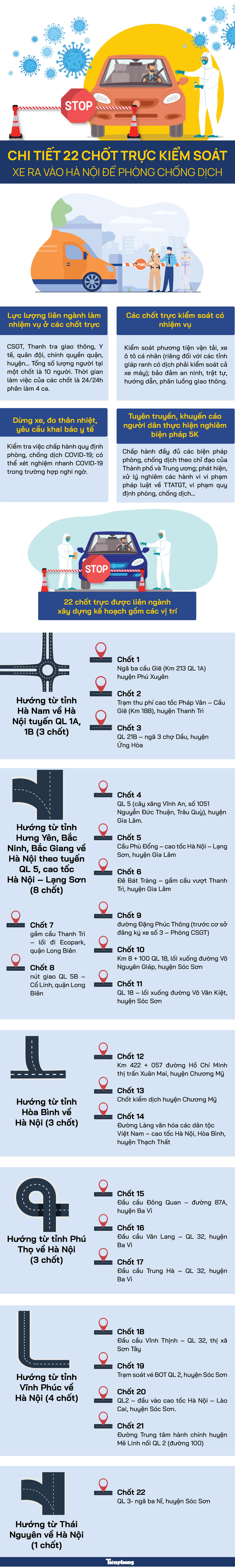 [Infographic] Chi tiết 22 chốt trực kiểm soát ra vào Hà Nội phòng chống dịch