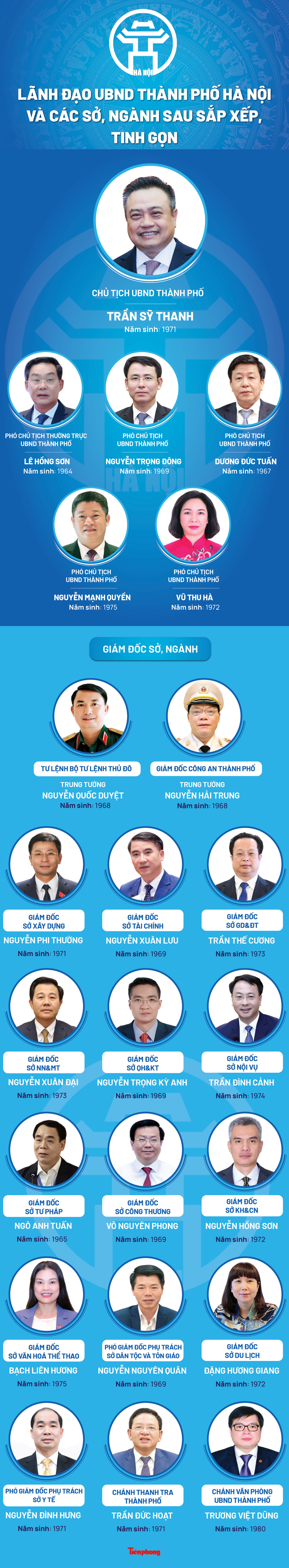 TPO - Ngày 25/2, HĐND thành phố Hà Nội đã thông qua phương án sắp xếp các sở, ngành của thành phố (giảm 6 sở). Cùng ngày, UBND thành phố cũng đã trao các quyết định về công tác nhân sự. Dưới đây là bộ máy lãnh đạo UBND thành phố, lãnh đạo sở, ngành thành phố sau khi sắp xếp, tinh gọn.