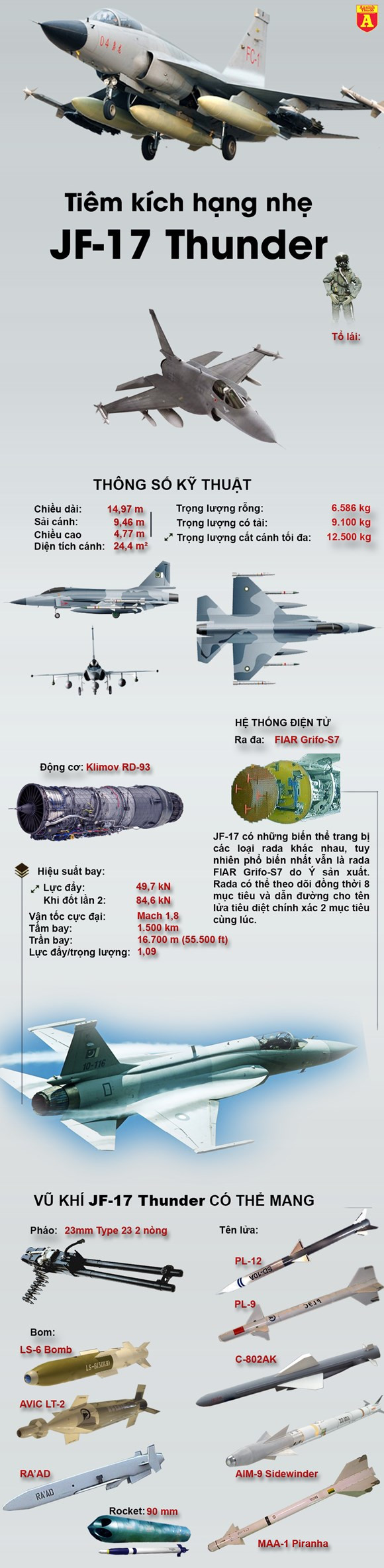 JF-17 Thunder là chiến đấu cơ hạng nhẹ thế hệ thứ 4 do Trung Quốc và Pakistan hợp tác phát triển. Tuy được quảng bá với nhiều tính năng vượt trội và có giá bán rẻ đến bất ngờ, nhưng cho tới nay vẫn chưa có khách hàng nào ngó ngàng đến chiến đấu cơ này. Hiện mới chỉ có 8 chiếc bao gồm 4 chiếc nguyên mẫu thử nghiệm và 4 chiếc hoàn thiện đã bàn giao cho không quân Pakistan.