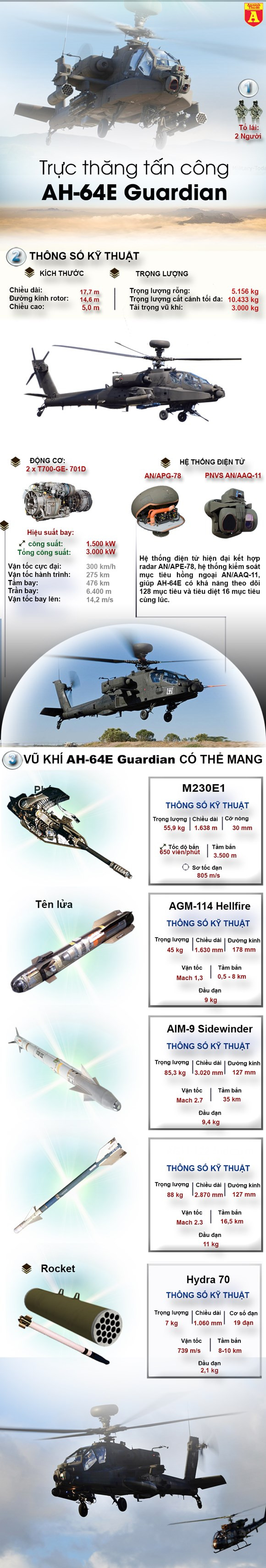 Bộ Quốc phòng Ấn Độ vừa chấp thuận mua thêm 6 máy bay trực thăng tấn công hạng nặng AH-64E Apache trị giá gần 654,6 triệu USD, chúng sẽ bổ sung thêm vào phi đội những chiếc Apache đặt mua trước đó. Dự kiến Ấn Độ sẽ nhận những chiếc máy bay này vào năm 2020. AH-64E Guardian hiện là phiên bản mạnh nhất hiện nay trong gia đình trực thăng tấn công Apache. So với những phiên bản trước, AH-64E được nâng cấp cả về hệ thống động cơ, điện tử và vũ khí, chúng sẽ đóng vai trò trực thăng tấn công mạnh nhất khu vực Nam Á.
