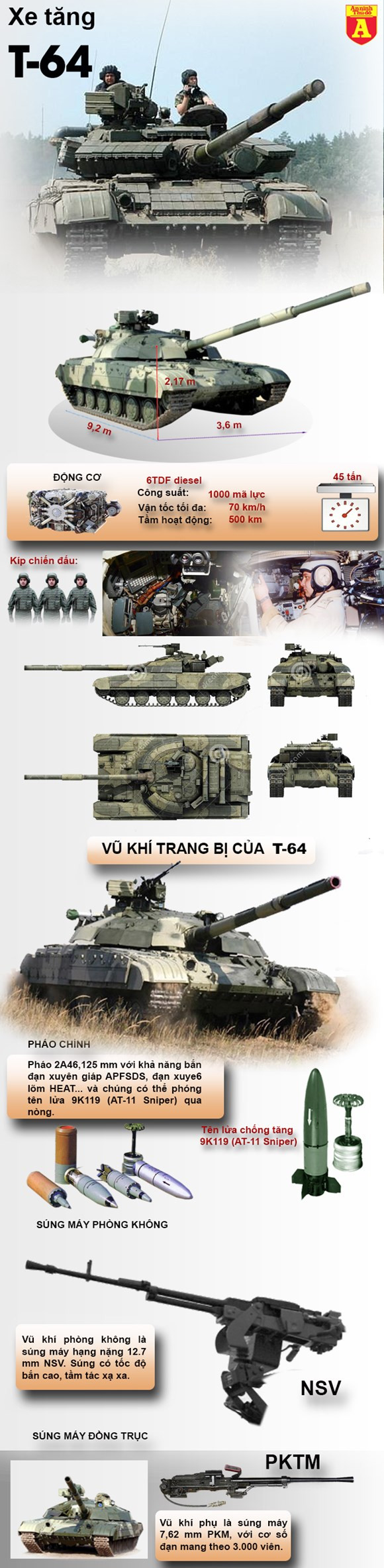 Ra đời vào năm 1966, ẩn chứa công nghệ tối mật, đắt đỏ giúp chiếc xe tăng T-64 được coi là đỉnh cao công nghệ xe tăng chiến đấu của Liên Xô. Ngay cả những xe tăng mạnh nhất của phương Tây thời điểm bấy giờ cũng không thể so sánh được. Hiện T-64 vẫn đang được duy trì hoạt động trong biên chế của Nga và Ukraine, những biến thể mới được nâng cấp giúp xe tăng vẫn có sức chiến đấu ngang ngửa với những xe tăng hiện đại ngày nay.