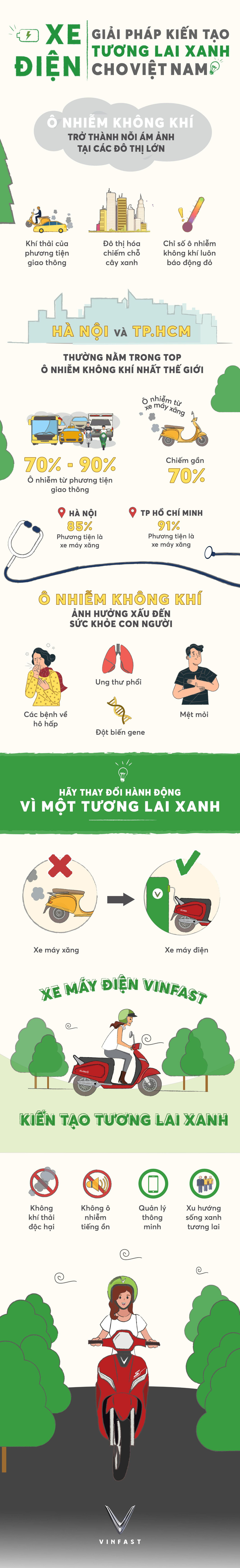 Khi ô nhiễm không khí trở thành nỗi ám ảnh tại các đô thị lớn, trong đó nguồn khí thải từ phương tiện giao thông chiếm 70-90% nguyên nhân gây ô nhiễm, việc chuyển đổi sang sử dụng xe điện được xem là một giải pháp hữu hiệu giúp kiến tạo tương lai xanh, sạch hơn cho cộng đồng.