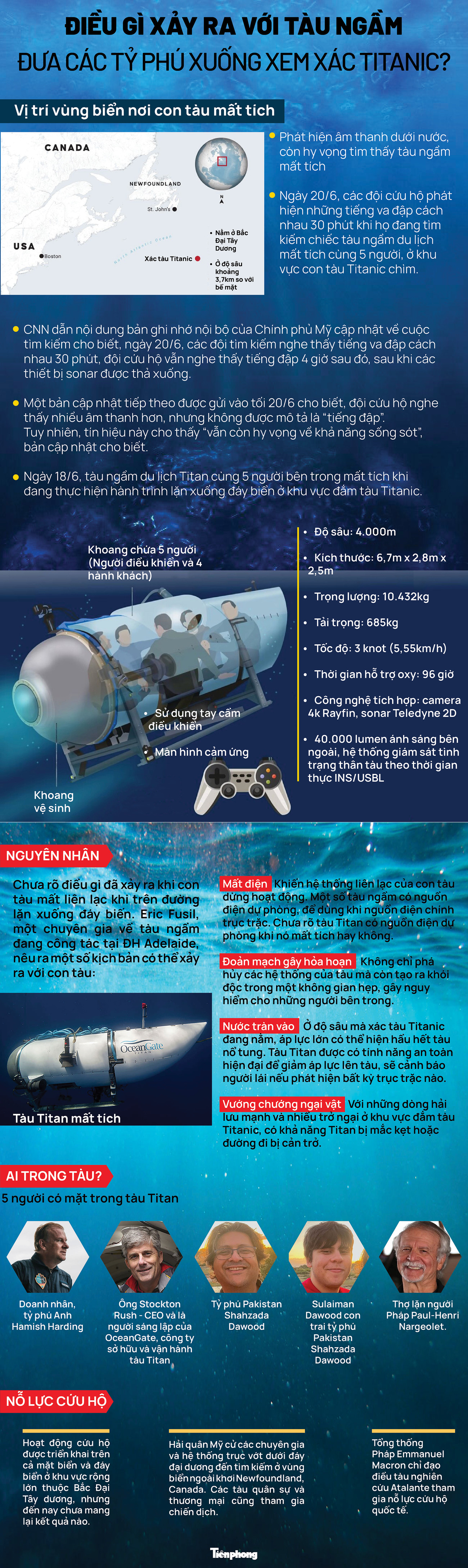 [Infographics] Điều gì xảy ra với tàu ngầm đưa các tỷ phú xuống xem xác Titanic?
