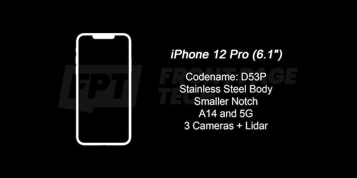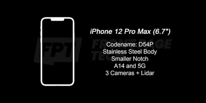 Trong khi đó, hai phiên bản cao cấp iPhone 12 Pro và Pro Max sẽ có mã sản phẩm lần lượt là D53P và D54P, với khung máy bằng thép không gỉ và cũng có các cạnh phẳng. Tất nhiên, cả hai phiên bản này sẽ có màn hình OLED với kích cỡ lớn hơn đi kèm đó là viền mỏng hơn.